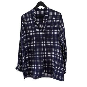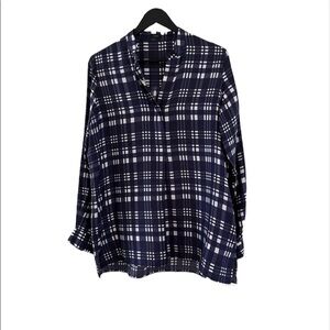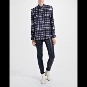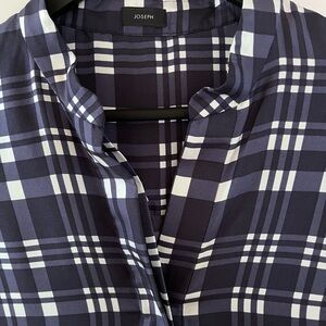 Joseph Silk Oversized Plaid Twill Dara Blouse 1/4 button down shirt. Size 8