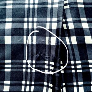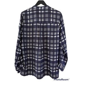 Luxurious 100% silk JOSEPH Check Twill New Dara Blouse ( the blouse is called “new Dara” by the label; this item is used). Oversized navy blue with white accents, effortlessly blends functionality with contemporary femininity. Classic barrel cuffs and a short, covered, button-down placket are offset by a front pleat and deep side vents - emphasising the fluid, pure silk fabrication. This hip-length, pared back shirt will be a key layering essential season after season. The silk has a few thread pulls in the front - see photo of flaws & of location. Recent Dry cleaning label still attached. Size 38 UK translated to Size 8 ( I’m a size 12 and this fits me - it is definitely oversized).