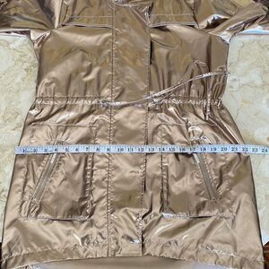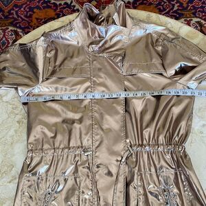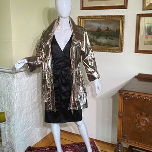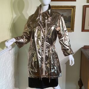 New without tags gorgeous Joseph Ribkoff lightweight metallic trench coat. This thigh length coat/jacket is light and features a foiled texture, which gives it some serious shine.