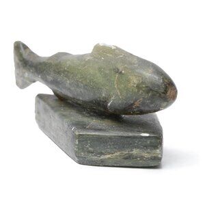 Josephie Pudloo Salmon Fish Stone Carving Signed Inuit Native Art Canada Nunavut