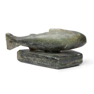 Josephie Pudloo Salmon Fish Stone Carving Signed Inuit Native Art Canada Artist Nunavut