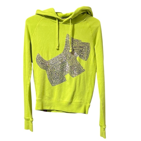 Turn heads with this vibrant fluorescent green/yellow Joshua Peretz hoodie ๐ A true throwback piece that radiates early-2000s energy. Featuring the signature JP silver sequin dog embellishment on the front, this hoodie mixes cozy comfort with glam streetwear style.