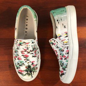 Joshua Sanders Leather Palm Tree Beach Umbrella Sneakers. Size 35. Pre-owned condition; very good condition. Really cool. Leather upper.