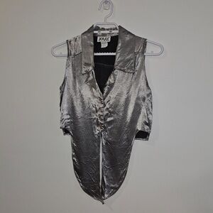 Joule Energy Vintage Tie Waist Sleeveless Blouse S Metallic Silver