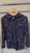 Soft and swishy viscose button down with vibrant pattern on navy background. Measurements in photos. In great condition.