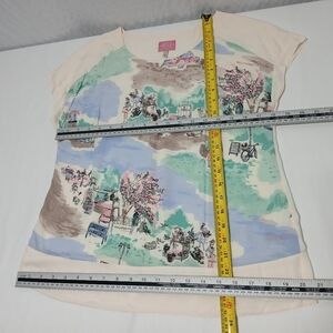 Joules Great Britian Viscose Short Sleeve Shopping Print Blouse. Size 6