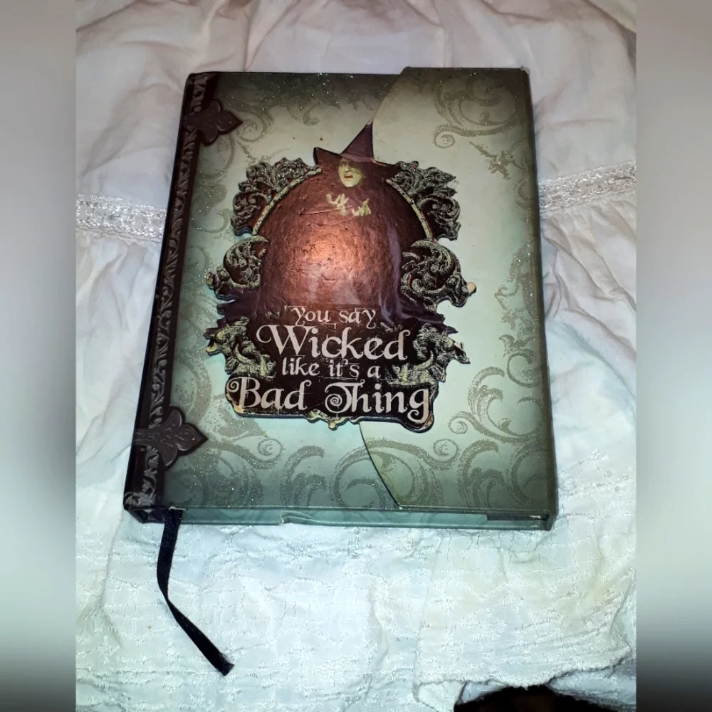 perfect for keeping your witchy notes in! the wicked witch of wizard of oz Grace's the cover of this 'grimoire' notebook. some pages were written on so I removed them, still lots left, as is