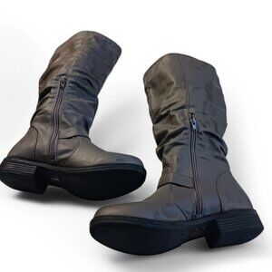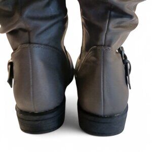 Journee Collection Gray Faux Leather Stormy Rutched Side Riding Boots – Size 8