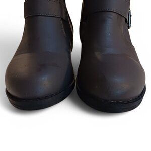 Step into comfort and style with the Journee Collection Gray Faux Leather Stormy Riding Boots in size 8. These chic boots feature a round toe, 1-inch stacked heel, and inside zip closure for easy wear. The 16-inch shaft height and adjustable calf circumference (14.5"-17.25") ensure a perfect fit for a range of leg shapes. Designed with a padded footbed, these boots offer all-day comfort. Ideal for both casual and formal occasions, they pair effortlessly with jeans, dresses, or rompers. With slouchy details and buckle accents, these faux leather boots combine durability, luxury, and style. NWT, in excellent condition. May have slight marks on bottom.