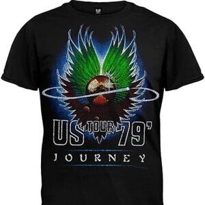 Celebrate classic rock with this Journey US Tour '79 graphic t-shirt. Featuring a bold design on a black background, this shirt is perfect for music lovers.