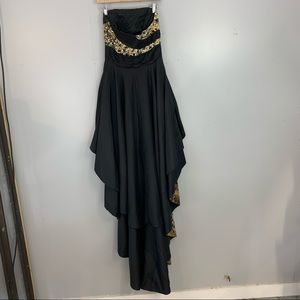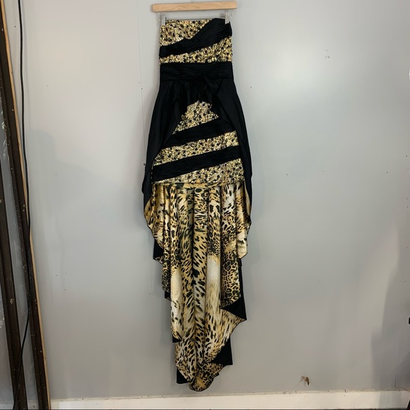 Jovani Dress Gown Prom Hi-Lo Sequin Animal Print Tiger Black Mini Train