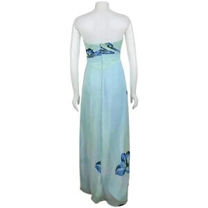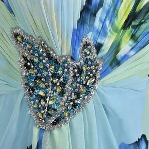 Jovani Gown Blue Green Floral Watercolor Beaded Strapless Chiffon Prom Grad 4