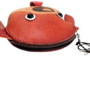 Joy-Handcrafted Leather Wagging Tongue Puppy Zipper Wristlet Coin Purse-NWT