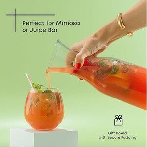 JoyJolt Glass Carafe with Lid 1 Liter - Pitcher for Mimosa Bar, Juice, Wine, Wat