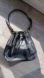 Type: Stylish black leather bucket bag with drawstring closure. Features gold-tone hardware and a unique emblem.