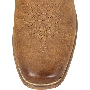 J's.o.l.e Women Tan Cowboy Boot Square Toe Mid Calf Pull On Fashion Embroidered
