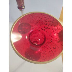 Jubilee Glass Taper Candle Holders Ruby Red Gold Gilded Scrolls 10" set of 2