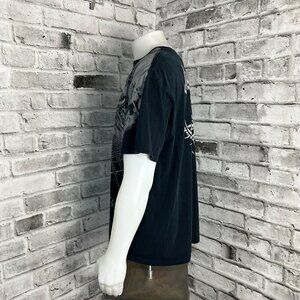 Capture the essence of metal royalty with this Vintage Judas Priest 2XL 2005 Angel of Retribution World Tour T-Shirt. Crafted for the true fan, this black, woven shirt features a bold graphic print that celebrates one of the most iconic heavy metal albums. Emblazoned with the timeless tour graphics, it's a classic piece that pays homage to the gothic, biker, and rock motifs of the '90s. Constructed with comfort in mind, this shirt boasts a collarless design and easy-care fabric that's machine washable, making it as practical as it is stylish. Whether you're hitting the road or heading to a festival, this unlined, preshrunk tee from Anvil's limited edition line is tailored to fit all seasons and is sure to be a staple in any rocker's wardrobe.