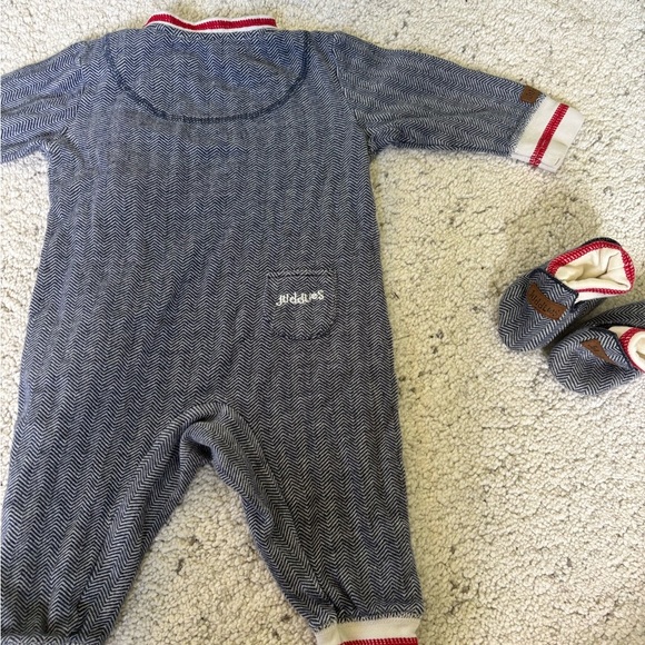 Juddlies Set Cottage Stye Blue and Red One Piece With Slippers Size 3-6m