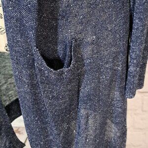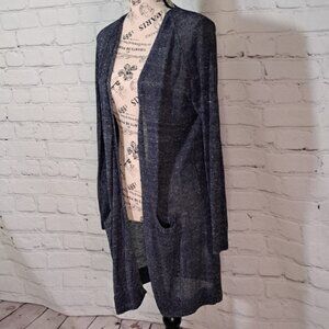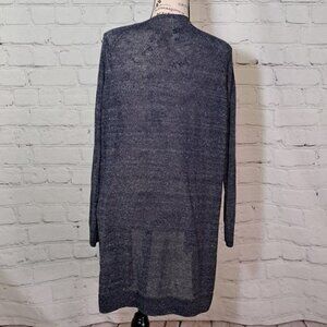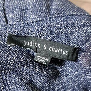 Judith & Charles Blue White Linen Blend Cardigan Sweater M