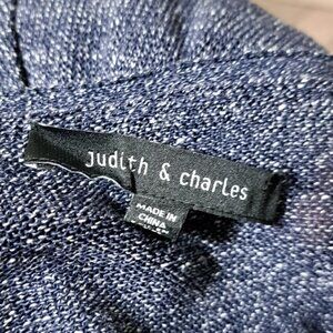 Judith & Charles Blue White Linen Blend Cardigan Sweater M