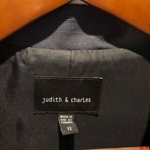 100% virgin wool. The quality you have come to expect from Judith & Charles. The camera does not do justice to the subtle pattern in the fabric. This fits small - it’s a 12 but was taken in to a 10 by Holt Renfrew when purchased. Great with dark wash denim jeans. Midweight. Perfect for fall or spring. Measures 15” from point of shoulder to point of shoulder. 17” under the arms. In very good condition - just too small for me now.