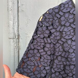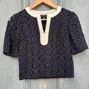 Perfectly preppy in cropped lace. Judith & Charles Lace overlay Blouse is a lovely little addition to your high rise pants or skirt.