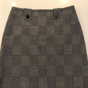 Judith & Charles Richler 100% Virgin Wool Lined Check Pattern Pencil Skirt in Grey, Black + Brown, Designer