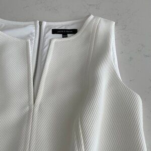 Judith & Charles Sleeveless Boat Neck Split V Lined Fit & Flare Textured Dress in White