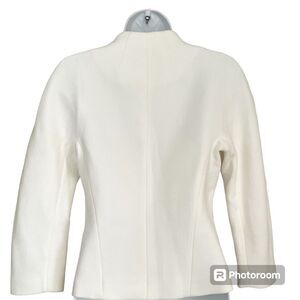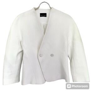 Judith & Charles white two button blazer. Drop shoulders, fully lined, in great pre-owned condition. It has been sitting in my closet so it will need to be dry cleaned to crisp up the white.