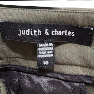 Elevate your wardrobe with these stylish Judith & Charles olive green trousers, designed for a sophisticated and modern look. Crafted in Portugal, these trousers offer a tailored fit that flatters any silhouette. The high-quality fabric ensures comfort and durability, making them perfect for both professional and casual occasions. With a classic design and versatile color, these pants are a wardrobe staple. Size 10, true to size.