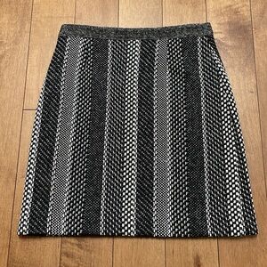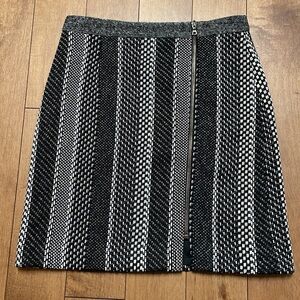 Judith & Charles woven knit black white metallic mini skirt size 4 zipper