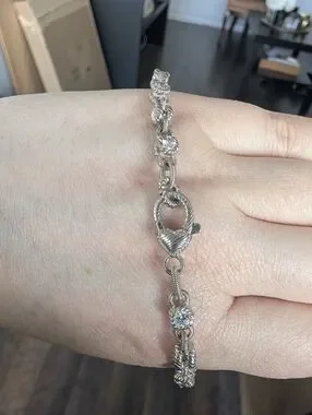 In the last picture there is a piece sticking out from the clasp of the bracelet, can be amended with pliers.