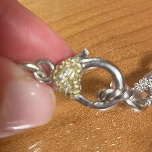 Hi, are there any designer markings? Is the entire necklace silver or is there son gold accents? Hard to tell in pics.