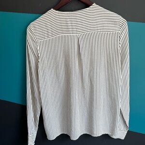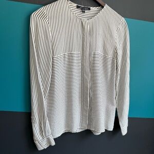 This top features a classic button-down style in a striking black and white color scheme. Its relaxed fit and minimalist design make it a versatile choice for both casual and semi-formal occasions. The light fabric ensures comfort and ease of movement.