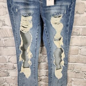 Judy Blue High Waist Vintage Destroyed Straight Leg NWT Blue Size 7/28