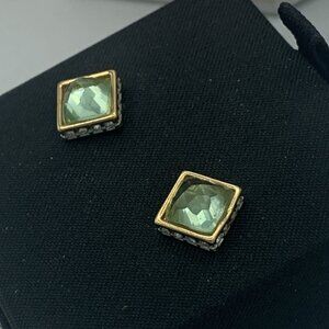 Add a touch of glamour to your outfit with these stunning Juicy Couture Pyramid Stone Studs Earrings. The earrings feature a beautiful aqua-colored rhinestone that sparkles in the light. The Juice Courture crown closure ensures that they are secure and comfortable to wear all day long. The gold color of the earrings complements any outfit and makes them a perfect accessory for any occasion. These earrings are perfect for anyone who loves to add a touch of style and elegance to their look.