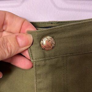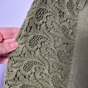 Juicy Couture Army Green Cotton Skirt. Great used condition. 100% Cotton. Fully lined. Front cargo pockets, faux pockets in the back. Lace detail on sides and back. See photos for measurements.