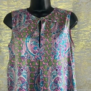 - Gorgeous light paisley top perfect for spring or summer,Front neckline tie closure with bead accents