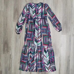 Juicy Couture Black Label Women's XS Colourful Geo Abstract Peasant Maxi Dress