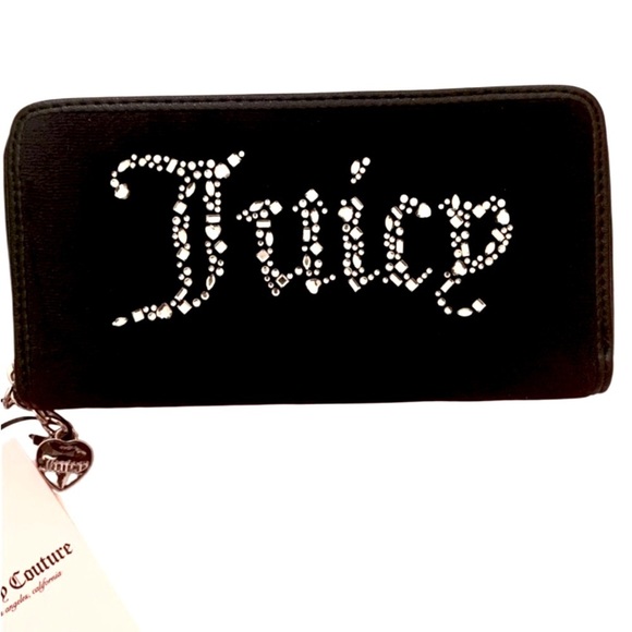 🖤🤍Elegant and stylish, this Juicy Couture wallet in black stunning lush pink 💕interior is perfect for any occasion. Featuring a chic design with the iconic rhinestone brand logo, with charm. it's a must-have accessory.