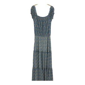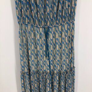 Juicy Couture Blue Beige multicolor Tiered Chiffon Paisley Maxi Dress size L