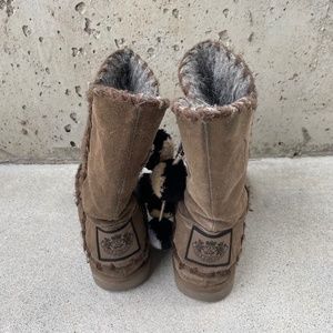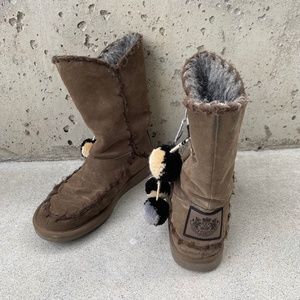 Juicy Couture Brown Fur Lined Winter Boots with Stitching and Pom Poms - size 8