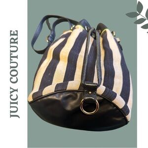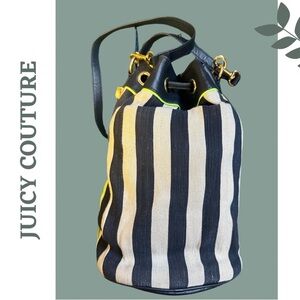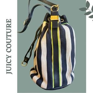Juicy Couture Bucket Bag Canvas Stripe Nautical Navy White Green Adj Strap