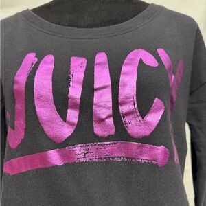 Keywords: Juicy Couture sweatshirt, Cropped oversized sweatshirt, Black sweatshirt with logo, Metallic pink logo print, Trendy casual wear, Vintage-inspired sweatshirt, Stylish loungewear, Women's cropped sweatshirt, Statement casual top, Juicy Couture black top