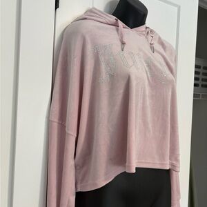 Juicy Couture Cropped Pink Velour Bling PJ Lounge Hoodie Size XL