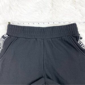 High waisted, cotton blend, fleece shorts by Juicy Couture. Black with brand stripe down the sides and elastic waistband. Excellent condition, size small.