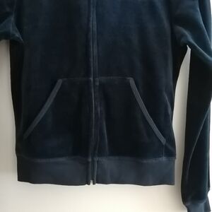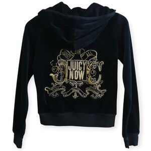 Juicy Couture Genuine Y2K Zip Up Rhinestone Embellished Back Navy and Gold Small