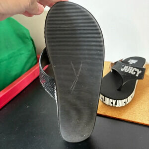 Juicy Couture J-Sandy Black Flip Flops Women’s 9M Embellished Silver 1” Heel