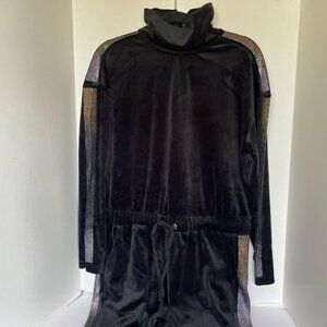 Juicy Couture Jumpsuit 90s Bling Velour Womens Black Mock Neck Ombre Stripe Y2K